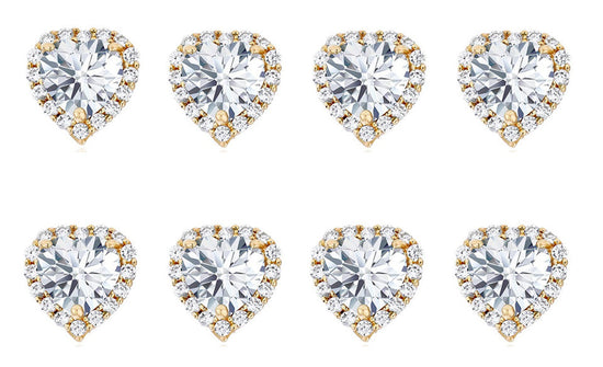 14k Yellow Gold Plated 4mm 2Ct Heart White Sapphire Set of Four Halo Stud Earrings