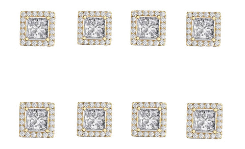 14k Yellow Gold Plated 6mm 1Ct Square Cut White Sapphire Set of Four Halo Stud Earrings