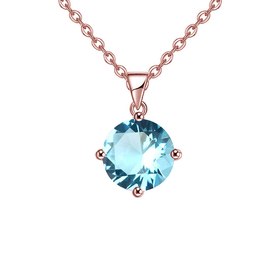 18K Rose Gold 1/2 Carat Created Aquamarine Round Stud Necklace Plated 18 inch