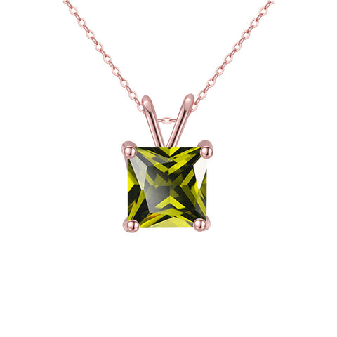 18K Rose Gold 2 Carat Created Peridot Princess Stud Necklace Plated 18 inch
