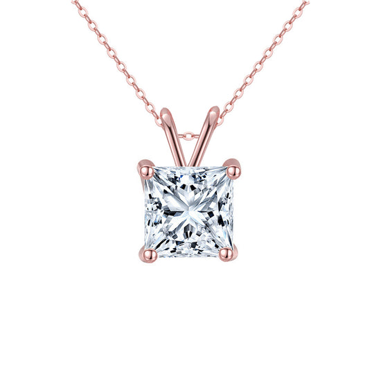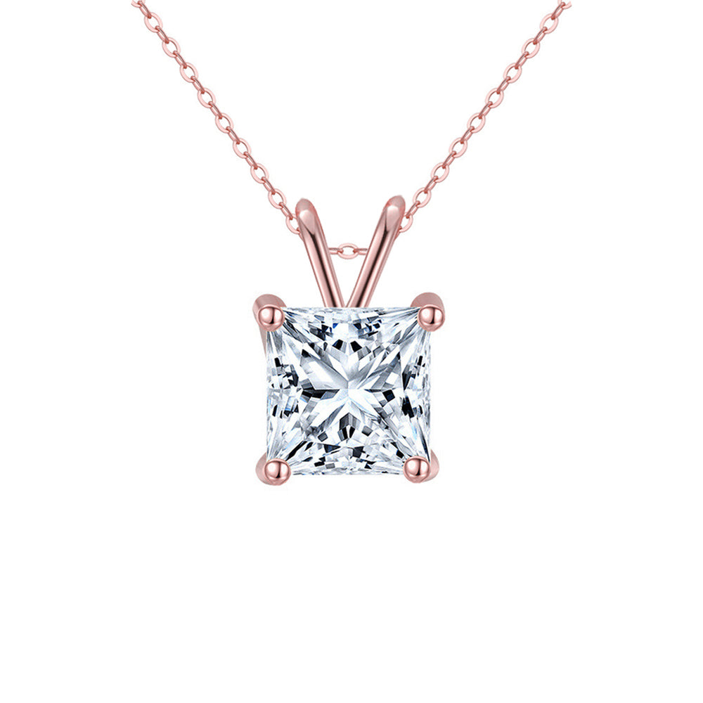 18K Rose Gold 2 Carat Created White Sapphire Princess Stud Necklace Plated 18 inch