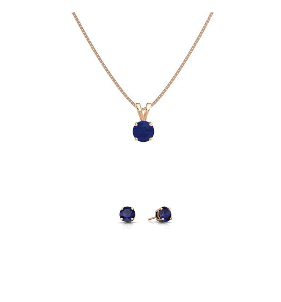 18K Rose Gold 2ct Blue Sapphire Round 18 Inch Necklace and Earrings Set Plated