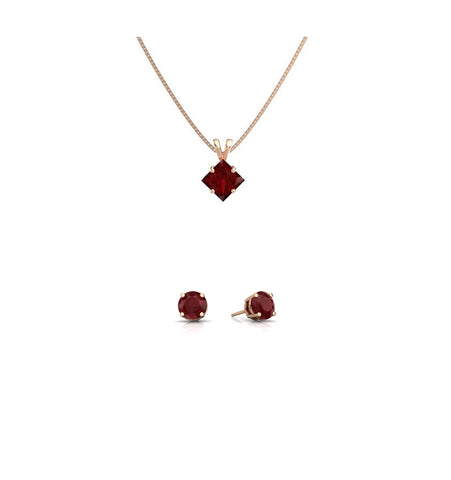 18K Rose Gold 2ct Ruby Square 18 Inch Necklace and Round Earrings Set Plated