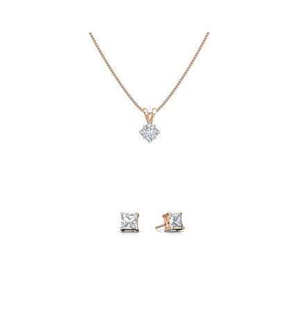 18K Rose Gold 2ct White Sapphire Square 18 Inch Necklace and Earrings Set Plated