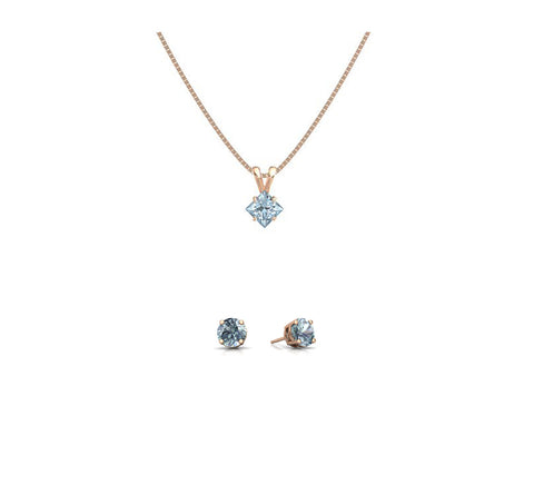 18K Rose Gold 3ct Aquamarine Square 18 Inch Necklace and Round Earrings Set Plated