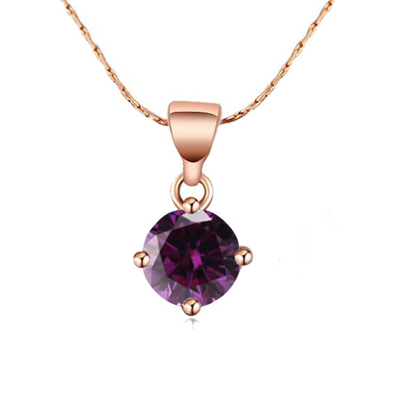 18K Rose Gold 4 Carat Created Tanzanite Round Stud Necklace Plated 18 inch