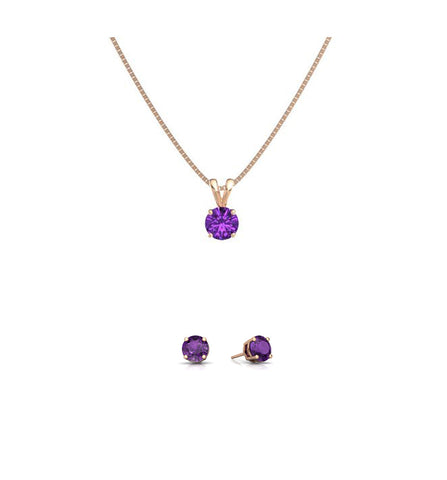 18K Rose Gold 4ct Amethyst Round 18 Inch Necklace and Earrings Set Plated