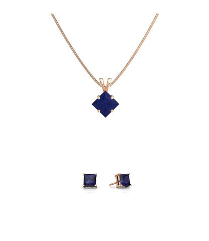 18K Rose Gold 4ct Blue Sapphire Square 18 Inch Necklace and Earrings Set Plated