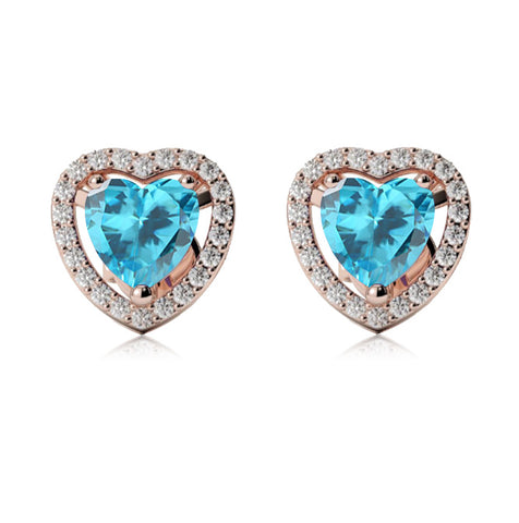 18k Rose Gold Plated 1 Ct Created Halo Heart Blue Topaz Stud Earrings