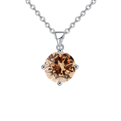 18K White Gold 1/2 Carat Created Citrine Round Stud Necklace Plated 18 inch