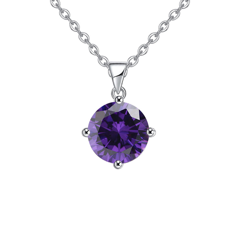 18K White Gold 3 Carat Created Amethyst Round Stud Necklace Plated 18 inch