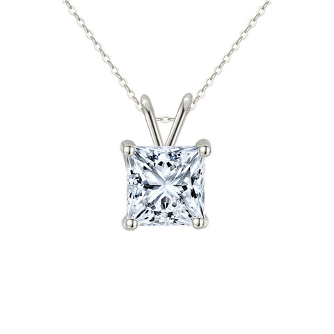 18K White Gold 4 Carat Created Cubic Zirconia Princess Stud Necklace Plated 18 inch