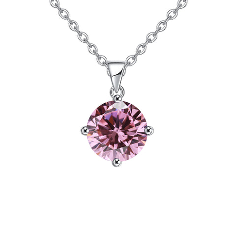 18K White Gold 4 Carat Created Pink Sapphire Round Stud Necklace Plated 18 inch
