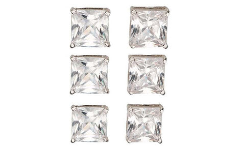 18k White Gold Plated 1/2Ct Square Cut White Sapphire Set Of Three Stud Earrings