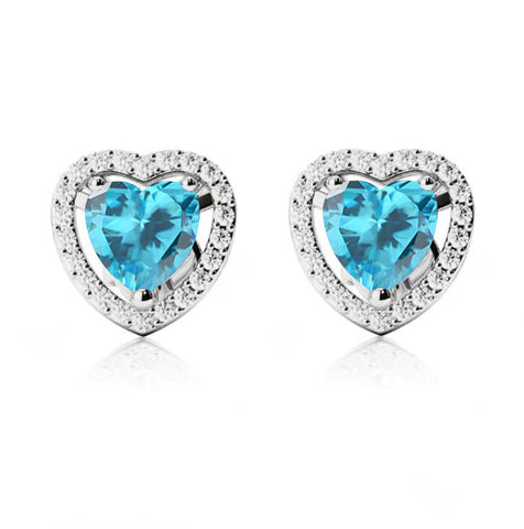 18k White Gold Plated 2 Ct Created Halo Heart Blue Topaz Stud Earrings