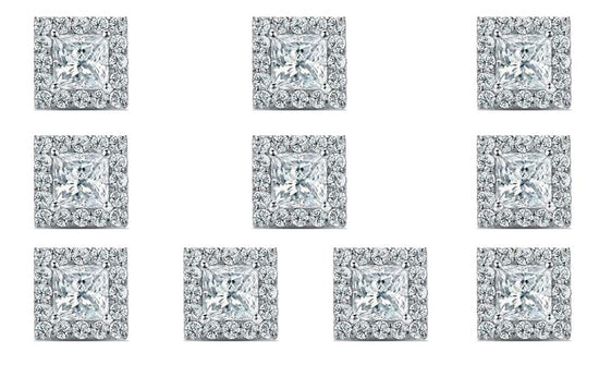 18k White Gold Plated 2Ct Princess Cut White Sapphire Set of Five Halo Stud Earrings