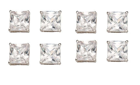 18k White Gold Plated 3Ct Square Cut White Sapphire Set Of Four Stud Earrings