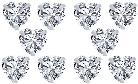 18k White Gold Plated 4Ct Heart White Sapphire Set Of Five Stud Earrings