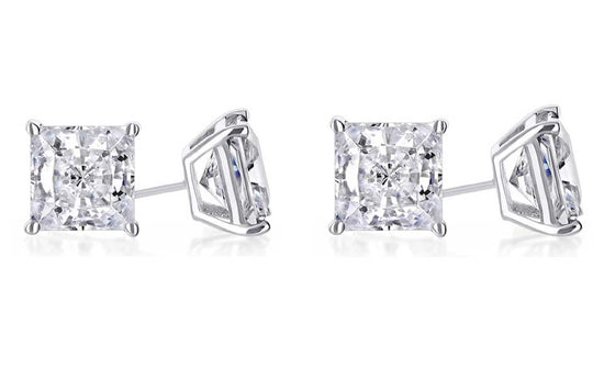 18k White Gold Plated 4mm 1/2Ct Princess Cut White Sapphire Set Of Two Stud Earrings