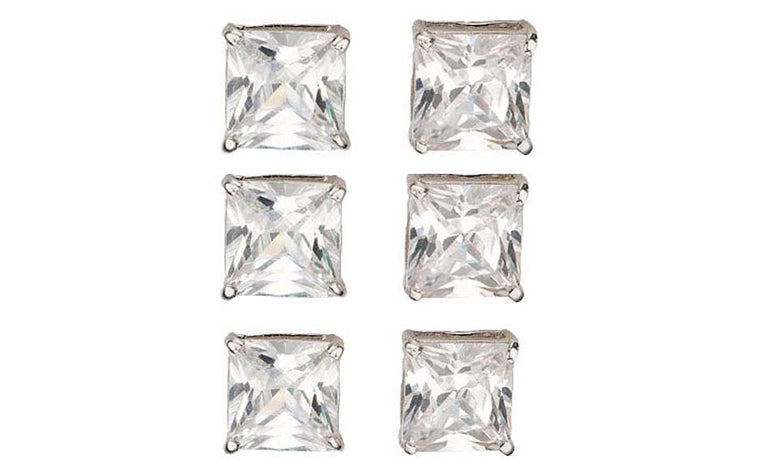18k White Gold Plated 4mm 1/2Ct Square Cut White Sapphire Set Of Three Stud Earrings