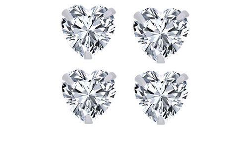 18k White Gold Plated 4mm 4Ct Heart White Sapphire Set Of Two Stud Earrings