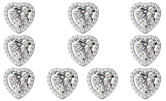 18k White Gold Plated 6mm 2Ct Heart White Sapphire Set of Five Halo Stud Earrings