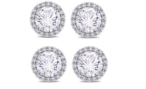 18k White Gold Plated 6mm 2Ct Round White Sapphire Set of Two Halo Stud Earrings