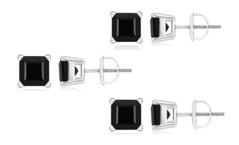 18k White Gold Plated Created Black Sapphire 1/2Ct Square Cut Pack of Three Stud Earrings