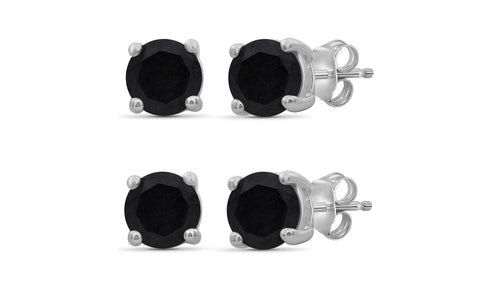 18k White Gold Plated Created Black Sapphire 2Ct Round Set of Two Stud Earrings