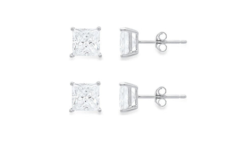 18k White Gold Plated Created White Sapphire 1/2Ct Princess Cut Set Of Two Stud Earrings