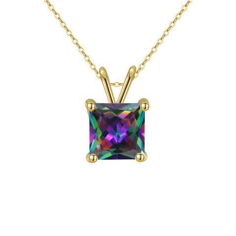 18K Yellow Gold 1/2 Carat Created Mystic Princess Stud Necklace Plated 18 inch