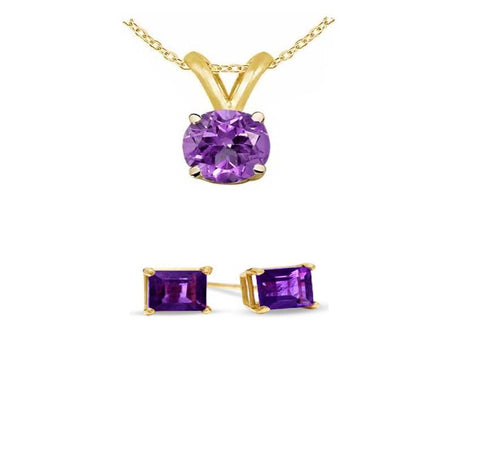 18K Yellow Gold 1/2ct Amethyst Round 18 Inch Necklace and Square Earrings Set Plated