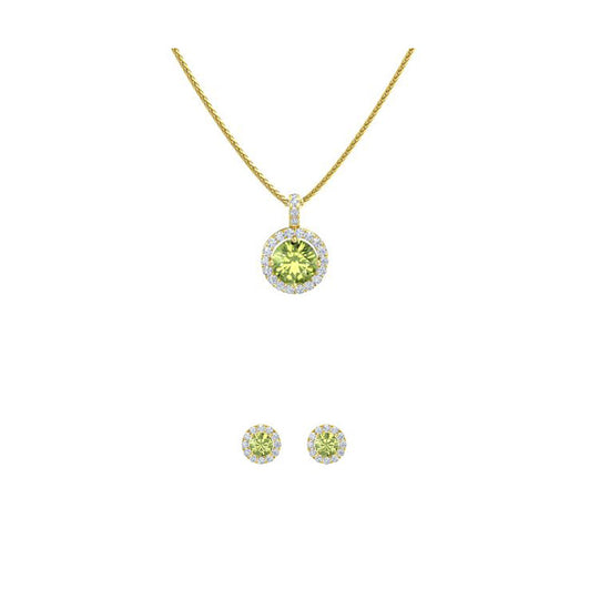 18K Yellow Gold 1/2ct Halo Peridot Round 18 Inch Necklace and Halo Earrings Set Plated
