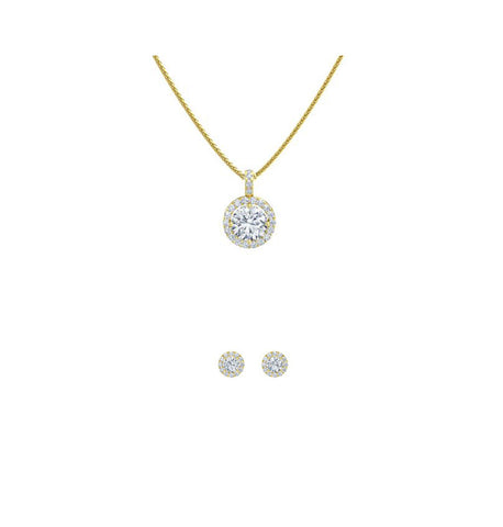 18K Yellow Gold 1ct Halo White Sapphire Round 18 Inch Necklace and Halo Earrings Set Plated