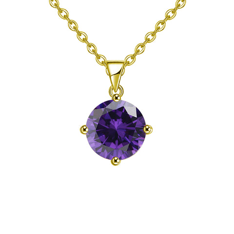 18k Yellow Gold 2 Carat Created Amethyst Round Stud Necklace Plated 18 inch