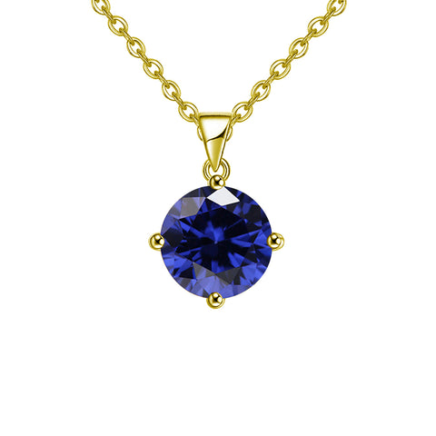 18K Yellow Gold 2 Carat Created Blue Sapphire Round Stud Necklace Plated 18 inch