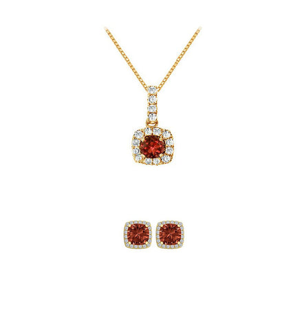 18K Yellow Gold 2ct Halo Garnet Square 18 Inch Necklace and Halo Earrings Set Plated