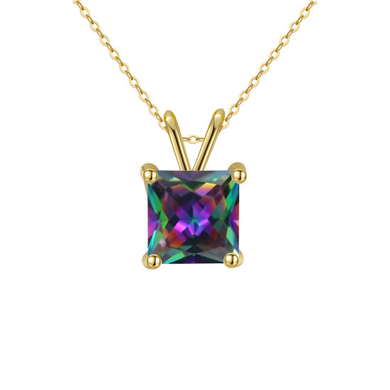 18K Yellow Gold 4 Carat Created Mystic Princess Stud Necklace Plated 18 inch