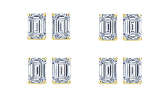 18k Yellow Gold 4mm 4Ct Emerald Cut White Sapphire Set Of Four Stud Earrings Plated