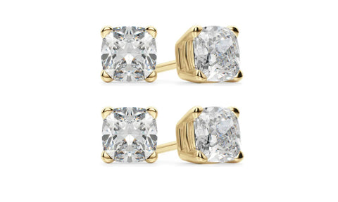 18k Yellow Gold 6mm 3Ct Cushion Cut White Sapphire Set Of Two Stud Earrings Plated