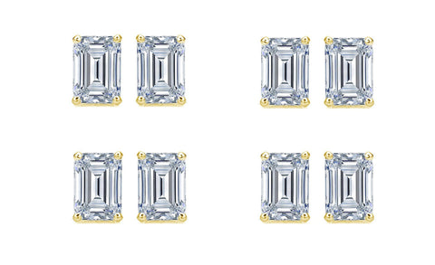 18k Yellow Gold 6mm 4Ct Emerald Cut White Sapphire Set Of Four Stud Earrings Plated