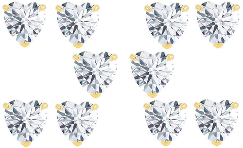 18k Yellow Gold Plated 1Ct Heart White Sapphire Set Of Five Stud Earrings