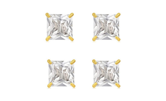 18k Yellow Gold Plated 2Ct Square Cut White Sapphire Set Of Two Stud Earrings