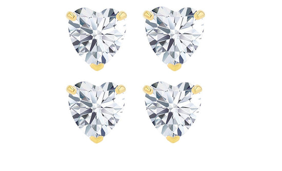 18k Yellow Gold Plated 3Ct Heart White Sapphire Set Of Two Stud Earrings