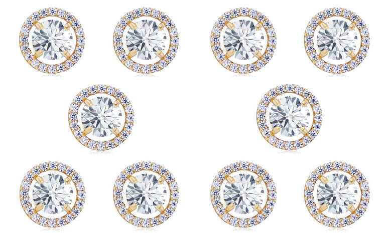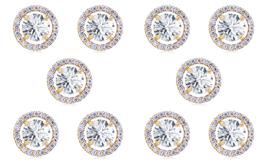 18k Yellow Gold Plated 3Ct Round White Sapphire Set Of Five Halo Stud Earrings