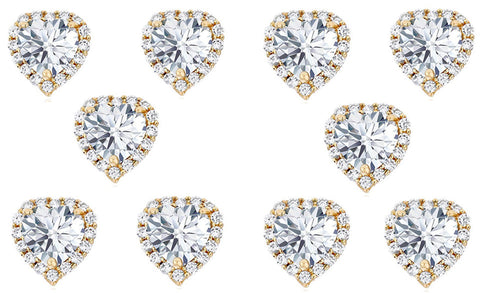 18k Yellow Gold Plated 4Ct Heart White Sapphire Set of Five Halo Stud Earrings