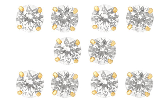 18k Yellow Gold Plated 4Ct Round White Sapphire Set Of Five Stud Earrings