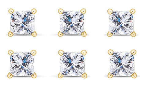 18k Yellow Gold Plated 4mm 1Ct Princess Cut White Sapphire Set Of Three Stud Earrings