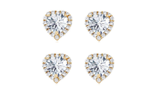 18k Yellow Gold Plated 6mm 4Ct Heart White Sapphire Set of Two Halo Stud Earrings