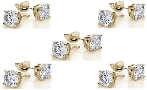 18k Yellow Gold Plated Created White Sapphire 2 Carat Round Pack of Five Stud Earrings